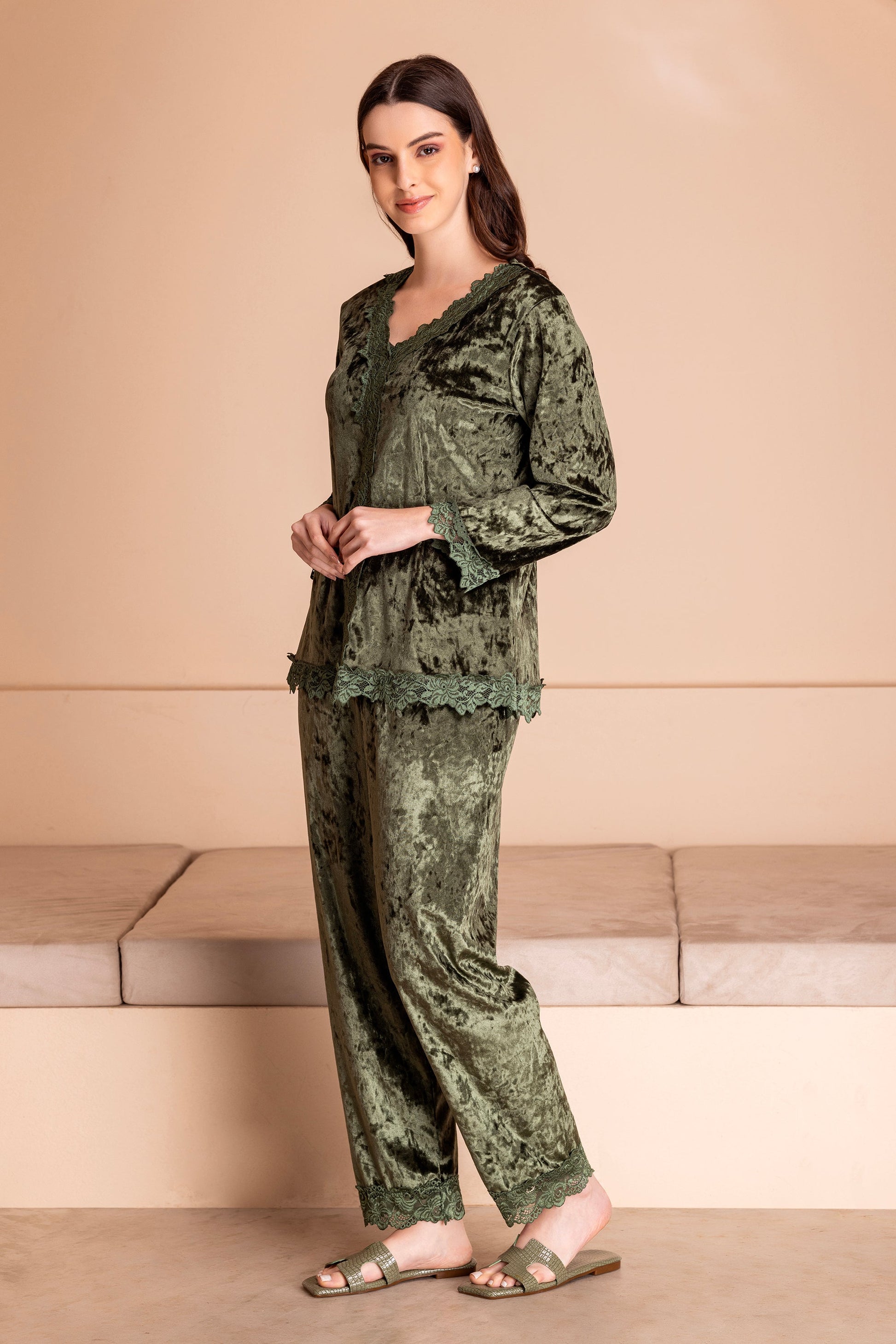 Emerald™ - Wrap yourself in elegance: winter nightsuit made of emerald green ice velvet!