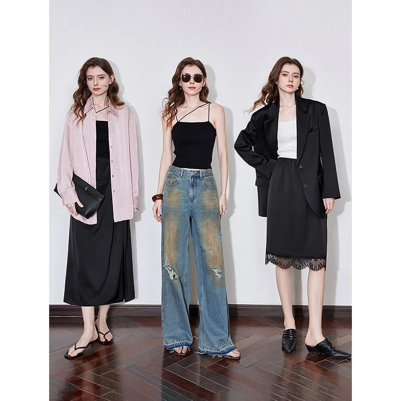 Add a touch of sophistication to your spring wardrobe with the asymmetric tank top . Designed for the modern, confident woman, this sexy, figure-hugging top features a striking asymmetric neckline and elegant knit texture. Perfect for layering or worn solo, it adds a touch of edge and elegance to any outfit.