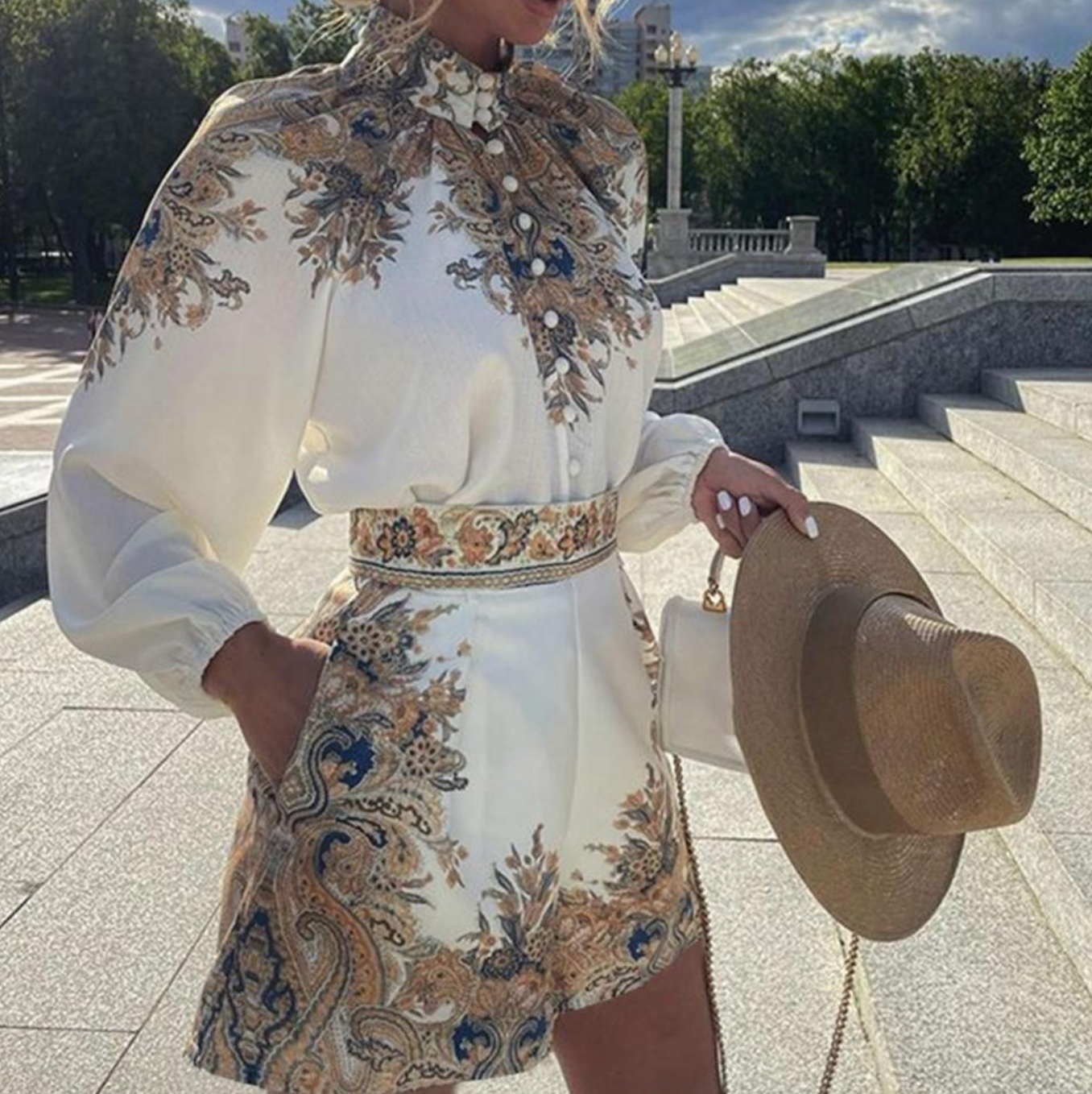 Choose the KAYLENE™ women's geometric print set and add a touch of style to your wardrobe. With its fashionable design, versatility, and comfort, it's the perfect choice for modern women who value style and comfort.