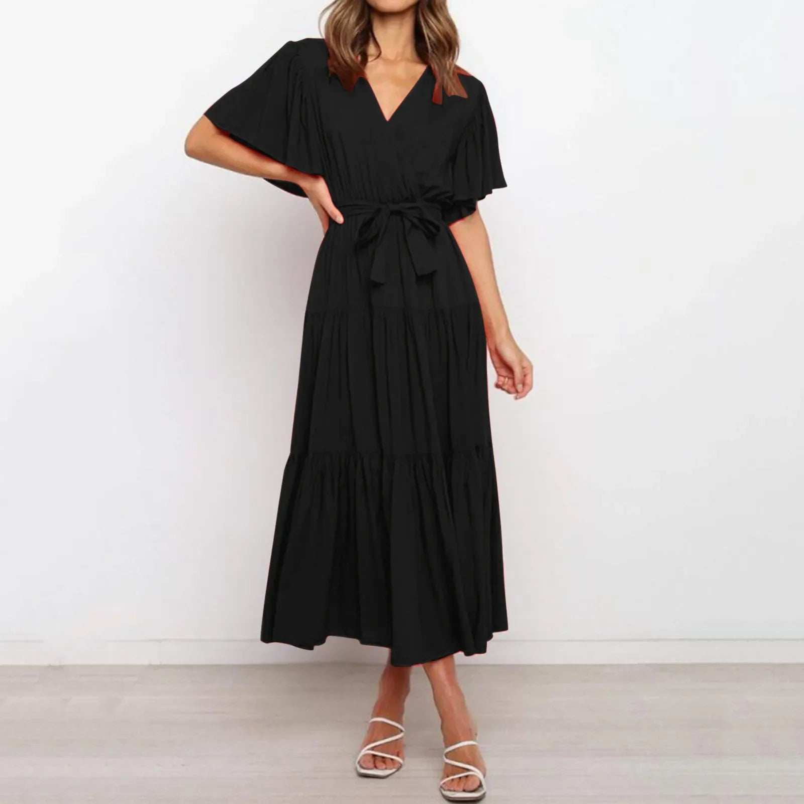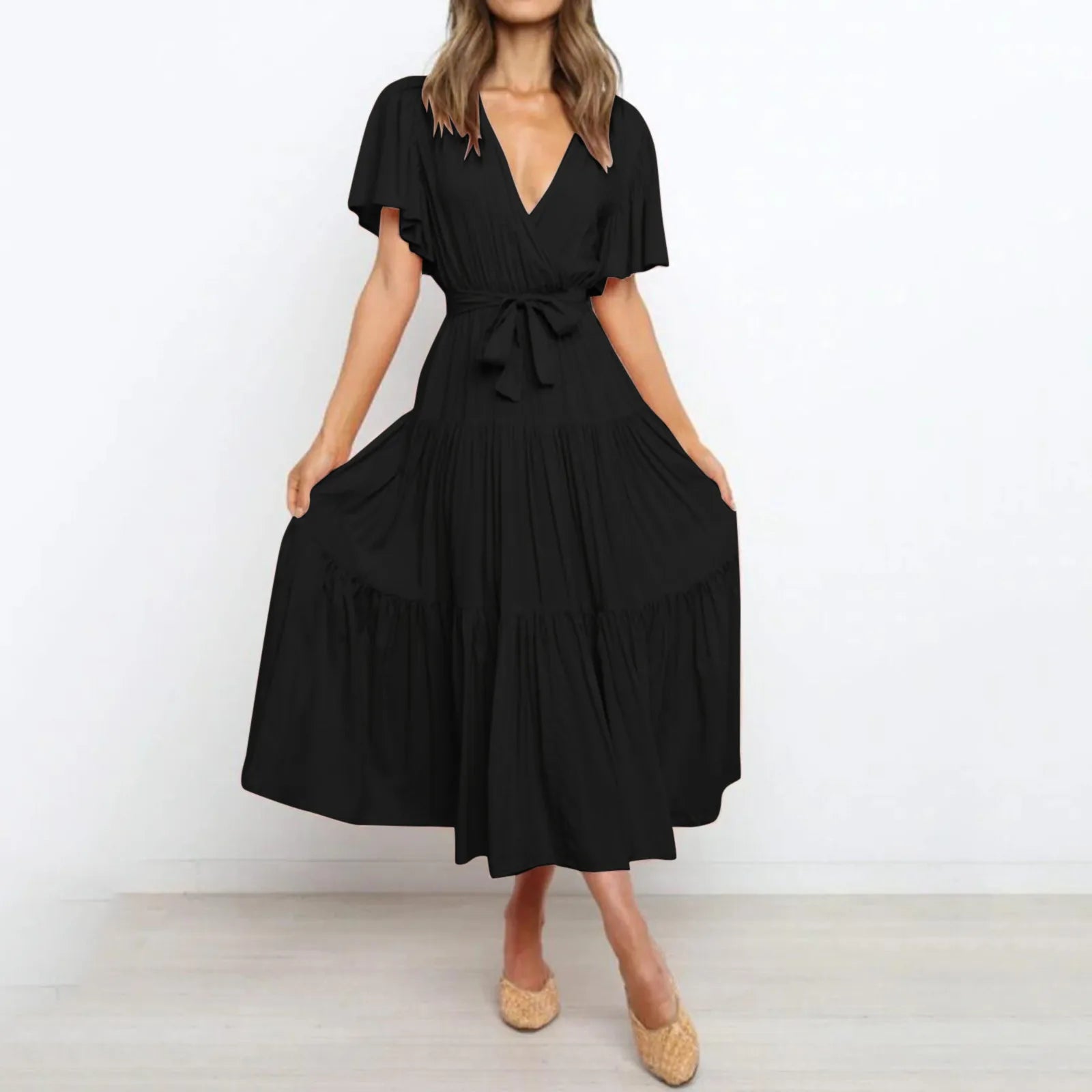 Turn heads in this vintage Klara™ maxi dress, perfect for summer parties and casual wear. This elegant dress features a flattering deep V-neck and a loose, comfortable fit.