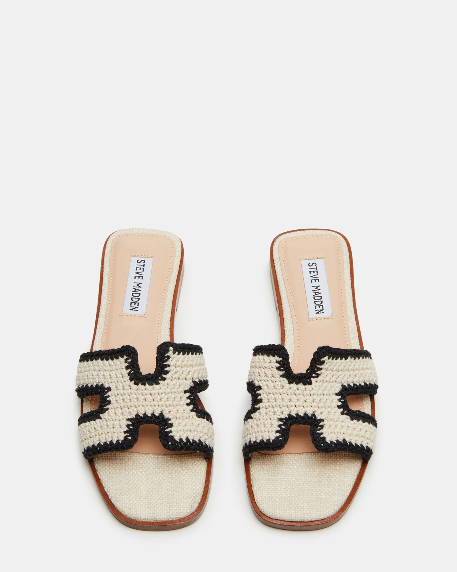 Discover effortless summer style with the Niccola slide sandal, featuring a wide strap with striking geometric cutouts for a modern, graphic touch. Soft textiles and durable synthetic materials combine for a comfortable fit, supported by a subtle 1.9 cm heel to accompany you through all your warm-weather adventures. The slip-on design makes them easy to slip on, while the synthetic lining and sole provide lasting comfort for city strolls, brunch meetups, or beach walks. If you're between sizes, going up half a size will ensure the best fit.