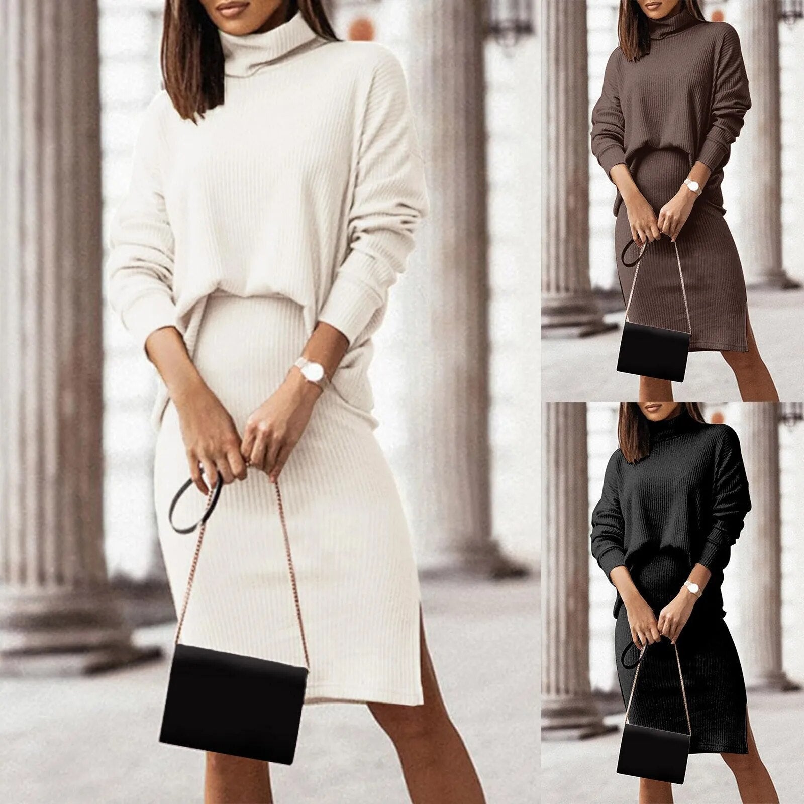 ✅ Versatile elegance: Our knitting set is the ideal choice for autumn and winter, with a midi dress and a turtleneck sweater suitable for different occasions.