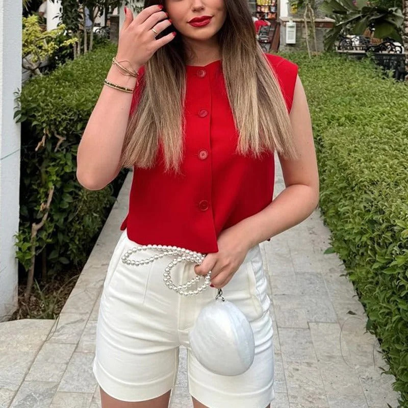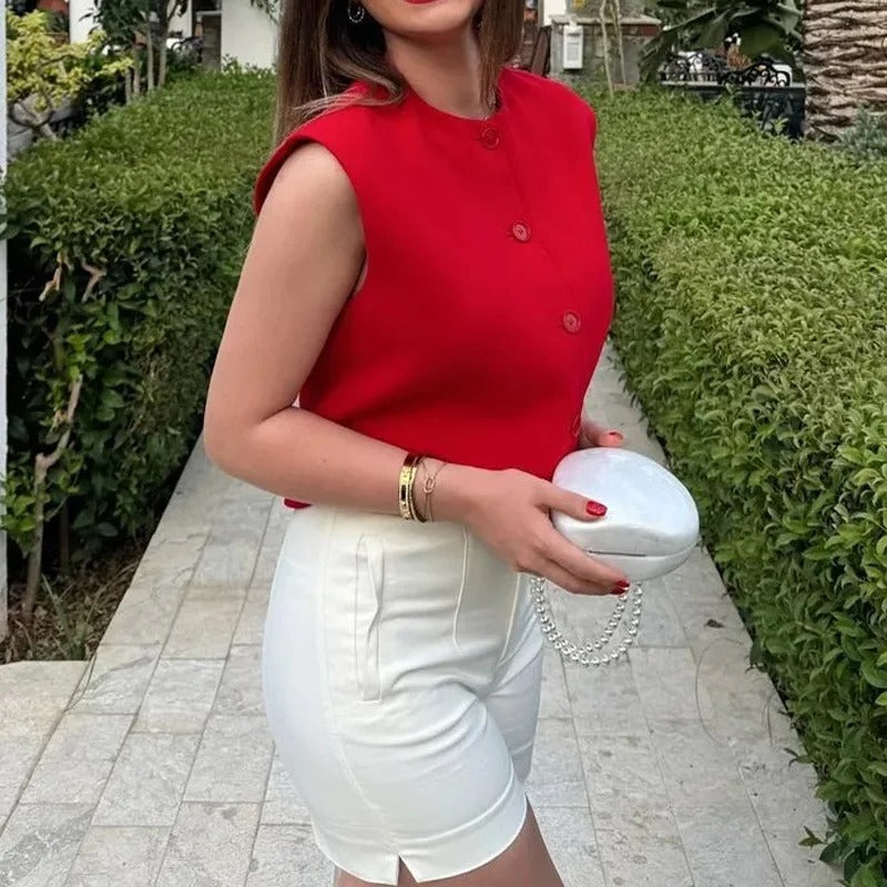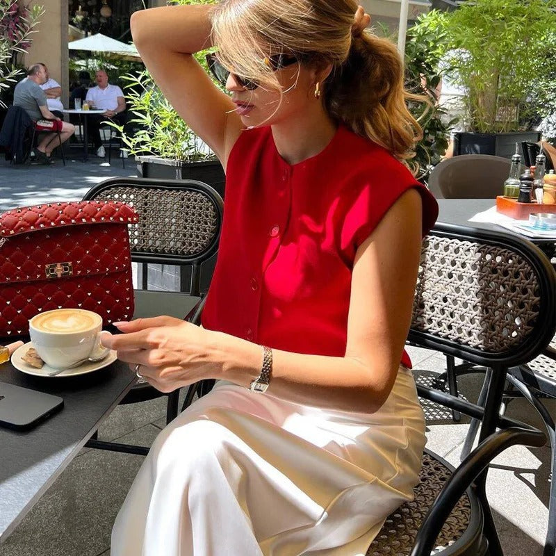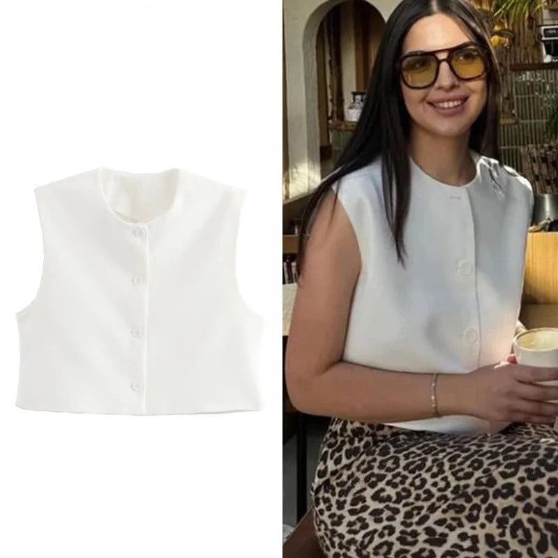 Upgrade your wardrobe with this elegant and sophisticated minimalist button-front cardigan. The cardigan features a clean, modern cut with a round neckline and a simple button closure. It's made from a smooth, textured fabric and is perfect for layering over blouses, shirts, or dresses for a sleek and sophisticated look.